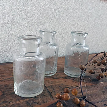 染料がはいっていた小さなガラスボトル。 ぽってりとした厚み、ひとつづつ形や厚みが違うのも魅力のひとつです。 詳細はこちら 均一に編まれた籠目(六つ目編み)が美しい竹細工のかごは戦後すぐのもの。 丁寧な日本の手仕事にふれられる一品です。 壁にかけたり、立てたりして、各々の用途で飾っていただけます。 詳細はこちら 注ぎ口がついた小さな受け皿は、昭和に使われていたもの。 今でも、それぞれの用途でお使い...