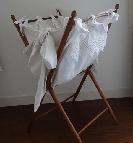 フランスより・・届きました♪ 古い木製のスタンドにアンティークリネンと クロシェレースを施したものです。 ナチュラルなお色で新鮮です♪ サイドのリボンも素敵です! 使わないときは立て掛けておけます♪ 布や毛糸などを収納したり作りかけの作品を入れて置いたり 使い方いろいろです! 来週月曜日の更新でご紹介します♪ 今ご紹介中のインテリア雑貨 ★ LULU YUKO ♪クリスマスセール開...
