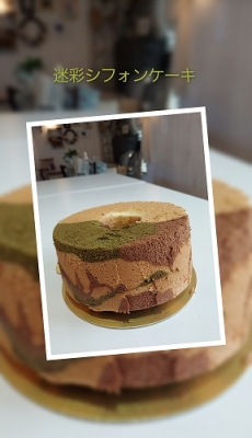 JUGEMテーマ:お菓子 こんにちは。 ケーキ教室Sweet Chocolaです。 綺麗な迷彩の模様になりましたね。 生徒さんの作品です。 あまり考えないでランダムに型に入れて頂く方が 迷彩らしくなるような気がします。 冷まして型から出していただく時が ワクワクです。 オリジナルのシフォンケーキです...