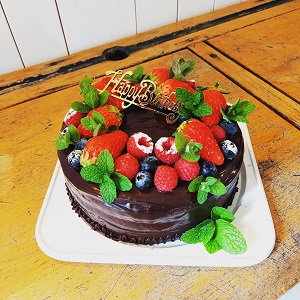 JUGEMテーマ:お菓子 こんにちは。 ケーキ教室Sweet Chocolaです。 先日、ご注文をいただいて作ったチョコレートケーキです。 ラズベリー、ブルーベリーそしていちごを飾りました。 庭で育っているミントも添えて春の雰囲気です。 甘さ控えめのチョコレートケーキです。 木曜日に販売するメニューにも 作らせていただいていますので  ...