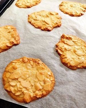JUGEMテーマ:お菓子 こんにちは。 ケーキ教室Sweet Chocolaです。 卵白で作る 大好きな「アーモンドチュイル」です。 洋風薄焼きせんべいみたいなものです。 卵白にアーモンド、グラニュー糖、薄力粉、少量のバターを 加えてオーブンへ。 焼き加減はお好みですが 私の好みはこれくらいです。 手軽に作...