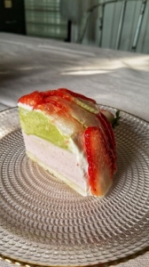 JUGEMテーマ:お菓子 おはようございます。 Sweet Chocolaです。 本日のドームケーキができました。 抹茶といちごのムース フレッシュいちごのケーキです。 お取り置きも賜っていますので ぜひご利用ください。 よろしくお願いします。