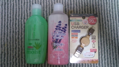 JUGEMテーマ:買ったもの 本日買った物。 全て百均。 化粧水2つとUSB充電ケーブル。 真ん中の化粧水は「ラベンダーの香りの化粧水」と言うもの。 神楽坂のTHE 100 STOREにて発見しました。 色々百均を巡っている中で初めて見た珍しい物でしたので興味本位で購入。 記載の通りほんのりラベンダーの香りがします。 左のキャンドゥで買ったアロエの化粧水もあまり見かけない物なので、どんな物か気になります。 買い置きを使い切ったら順々に試して行きたいと思います。 USB充電ケーブルもTHE 100 STORE神楽坂店にて...