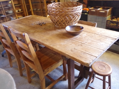 みなさんこんばんみ もはや9月を終えて10月に突入という恐ろしい事態ですが みなさんいかがお過ごしでしょうか そして今日の10月1日は何の日? そうみなさんご存じ、メガネの日! 普段ケントデリカットや勉三さんと馬鹿にされている眼鏡人達が 反旗を翻して裸眼族を襲う日です サングラスの人はグレーゾーンなので、襲われたり襲われなかったりです 気を付けておくれやす! そんな訳で今回のご紹介は 大きな作業台のようなテーブルです 木目の雰囲気が凄くよくて、少し細身でカッコいいです ...