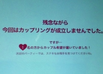 JUGEMテーマ:恋愛したい!出会いたい!結婚したい!そんなあなたのための恋愛、お見合い、結婚支援サービス このところ、 パーティーパーティーに参加しています。 40歳のぽっちゃりおじさんなので、 正直モテません。 何度も参加していますが、 毎回カップリング成立せず。 残念ながら今回はカップリングが成立しませんでした。 この文字を見ると、 悪寒が走ります。 まるで、...
