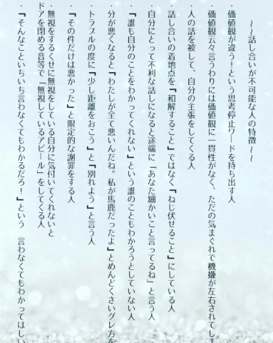 JUGEMテーマ:モラルハラスメント 話し合いにならない人····· の特徴。。。