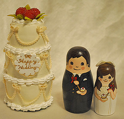 ご結婚されるお友達への贈り物に♪ マトリョーシカの形をいかしたケーキから 新婦と コックコートを着たネコさんが JUGEMテーマ:ウェディングドレス&ウェディング小物