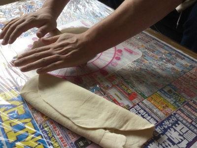 JUGEMテーマ:夫婦生活 今日のお昼御飯は、手打ちうどん♪ 夫婦力を合わせて作りました😆 薄力粉100g、強力粉100g、塩小さじ1、ぬるま湯90ccを混ぜ混ぜ。 一塊になるまでコネコネ。 10分置いて袋に入れて足で踏み踏み。 コネコネ作業は旦那さんにお任せ♪とっても力がいる! 1〜2時間放置。 その間に鶏胸肉がストックしてあったので、鶏天を作る事に♪ 下味にニンニクと生姜のチューブと塩とだしの素を揉み込んで・・・ 天ぷら粉を薄くまぶしてから・・・ 水で溶いた天ぷら粉をくぐらせて、揚げ焼きに・・・...