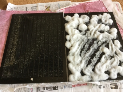JUGEMテーマ:夫婦生活 こんにちわ♪メイです。 あるブログを読んでいたら、お片づけを楽しくする方法として、ビフォーとアフターの写真を撮るって書いてあって。 確かに!と思ったんです。 先日綺麗にした旦那さんの靴の、ビフォーアフターを撮ったらなんだか楽しくなってきたなぁと思ったんです! そこで・・・私の嫌いな、換気扇フィルターの掃除で試してみました。 新聞紙と、しまむらのビニール袋を切り開いたやつを敷いて・・・ 油汚れ用の洗剤を、シュッシュッシュッシュッシュッシュッ・・・・・ 写真をパシ...
