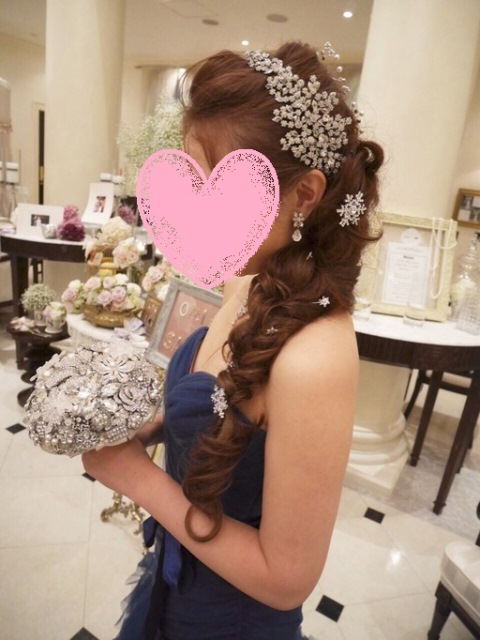 JUGEMテーマ:ウエディングブーケ 去年挙式を挙げられたお客様から写真をいただきました〜。 テンション マックスです (笑)。 シルバートーンやゴールドトーンのブローチで作ったブローチブーケは、カラードレスにぴったりですね。 キラキラ系のラインストーンとパールで作ったブローチブーケには、ドレスでは定番のタフタや光沢のあるサテンより、マットな感じの生地でできたドレスのほうが合うかもしれませんね。 このセンスには脱帽です! アナ雪のイメージだそうですが、可愛らしい〜〜〜〜〜 S様 ...