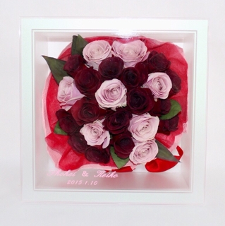 ブーケ保存はお任せください 記念のお花・ブーケの保存加工専門店 「ハッピーフラワー」HPはこちら 大切なブーケや花束は 思い出だけではなく、形に残すことで・・・ この先もあなたのそばで輝き続けます。 “お花”を通して、“幸せ”を形にする お手伝いをさせて頂いております こんにちは☆ ハッピーフラワーの清川です クレールボックスの作品紹介です プロポーズの花束を保存加工♪ 真っ赤なバラとキュートなピンクのバラの 組み合わせの花束です 今回は彼の方からご注文を頂き...