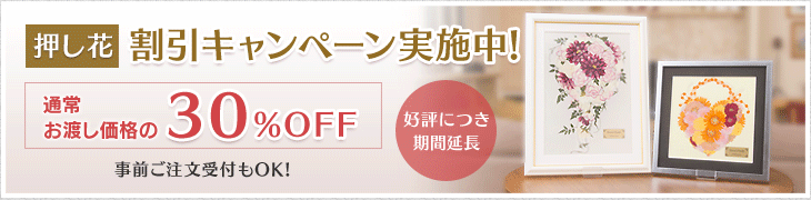 記念のお花・ブーケの保存加工専門店 『ハッピーフラワー』HP http://happy-flower.jp.net/ こんにちは☆ 記念のお花・ブーケの保存加工専門店 『ハッピーフラワー』 店長の清川です。 5月の上旬より、実施しておりました 押し花割引キャンペーンですが ご好評につき延長させていただくことになりました。 ご注文いただいた皆様、誠にありがとうございます♪ ハッピーフラワーの押し花加工は、 ドライ加工にも用いる遠赤外線装置を押し花加工にも使用し プレスしたお花の色素がよりきれいに発色します。 ...