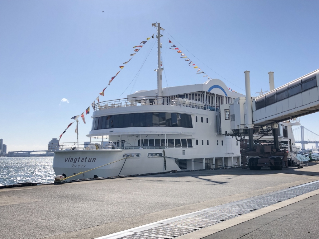 先だっての三連休の最終日、前回投稿でご紹介した、竹芝桟橋発着「レストランシップ・ヴァンテアン」のブライダルフェアが行われました。 同じような画像が続いて恐縮です。 でも“海”とか“船”って、どうしても撮りたくなっちゃうんですー。 この日は前の2日間に比べて気温は低かったもののご覧の通り快晴。 結婚式会場をお探しのカップルが乗船する訳ですから、スタッフとしてはホッとします。 参加者がいらっしゃる前の模擬...
