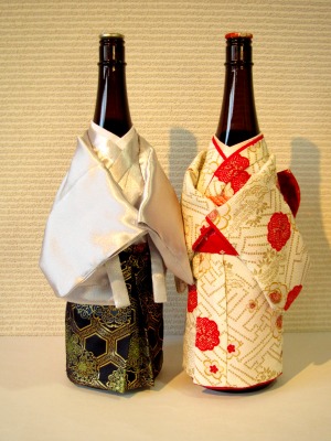 JUGEMテーマ:和雑貨 JUGEMテーマ:私たちだけのオリジナルウェディング 本日のお客様。 若いお二人。 仙台から、着物ボトルカバーをオーダーするために上京してきたとのこと。その場にいた他のお客様と一緒に「えっ!!?」 実物を見て確認したかったのでしょうね。 ご注文で多いのはワインボトルのサイズですが、今回のお客様のように一升瓶のサイズや、シャンパンのマグナムボトルのサイズも承ります。 縫い手の「しおや」、だだ今、人間用の着物の仕立て仕事が立...
