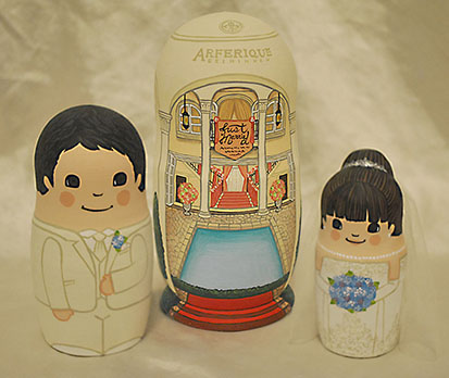 大阪本町、靭公園前にある アーフェリーク迎賓館で挙式をされるお友達への プレゼントにオーダー頂きました。 大サイズ3個組での制作。 プール付きガーデン、教会内部を大人可愛く再現。 JUGEMテーマ:ウエディング JUGEMテーマ:私たちだけのオリジナルウェディング