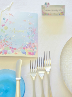 家族婚は、ペーパーアイテムもリゾート感のあるものを選びました。 席次表と席札は、THE HANYの、キアラ シリーズ。 もう、見た瞬間「これ!」ってなった。 エーキューブ・ウィッシュで無料サンプルを貰って(割引クーポンが付いてきます)、紙質もプリントも大満足だったので、こちらに決定。 招待状はちょっと可愛すぎたのと、枚数もいらなかったので、揃えなかった。 紅型染の招待状がいいなー と探したら、 クラフト館 で発見。 落ち着いた風合いで、彼の両親にも好評でした...