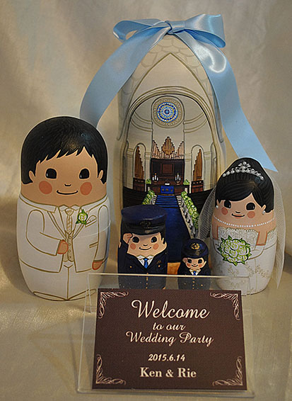 アニヴェルセル江坂の挙式会場となるチャペル内部の 青いバージンロードの雰囲気を再現 建物内部は忠実に。外観はこちらにお任せで。 大サイズ5個組で制作。 警察官の制服を着たお二人。 JUGEMテーマ:ウェディングドレス&ウェディング小物 JUGEMテーマ:ウェディング☆小物 JUGEMテーマ:私たちだけのオリジナルウェディング