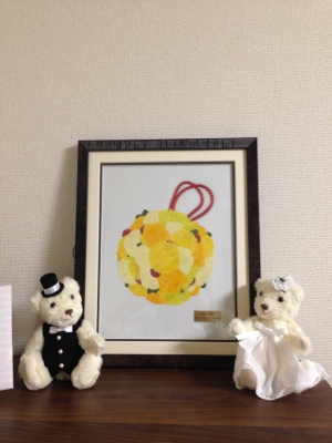 ブーケは特にこだわって作ってもらったので、何とか長く保存出来ないかと色々な方法を調べました。 プリザーブドも検討しましたが保管スペースの問題等もあり、押し花加工をお願いしました。 とても素敵に作成してもらえ、見る度に結婚式の感動を思い出します。 また、普段は寝室の棚にウェルカムベアと一緒に飾ってありますが、来客時にはリビングの壁に飾ります。 来客にも好評ですし、ブーケの押し花がきっかけで結婚式の話になって場が盛り上がる事も良くあります。 これも、気分や状況によって気軽に飾る...