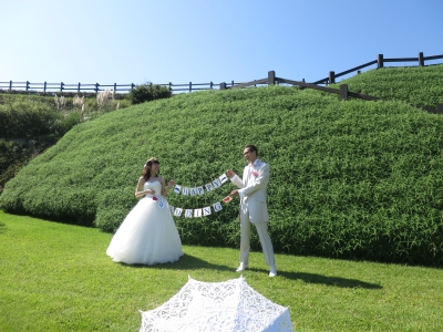 JUGEMテーマ:ブライダル 淡路島 ロケーション 前撮り撮影 2016年春に挙式のカップル❤ 前撮り撮影のお手伝いをさせて頂きました。 大阪の写真スタジオでヘアメイクをさせていただいて ご一緒に 淡路島へ 小旅行❤ 晴天で清清しい風の中 明石大橋を渡るときには 自動車の天井を開けて 初めて 真上に橋を見上げました。 風力発電の大きな羽がたくさん立っている所を通り抜けて 太陽光発電のパネルがたくさん設置されていたり・・ ぶどう狩りの看板を横目で見ながら あわじ花さじきに...