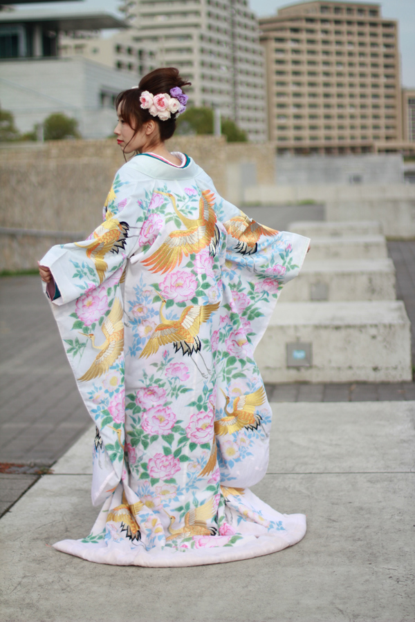 JUGEMテーマ:ブライダル 神戸 Location 色打ち掛け 振袖 神戸で生まれて 震災の頃は小学生だった妹が 結婚します。 嬉しいですね。 京都の手描き友禅の先生が心を込めて 薔薇の絵を描いてくれました。 ヘアにつけている薔薇は 友人のプレゼント トルコ桔梗は お客様からのプレゼント もう一つ 私のベランダに咲いたお花を飾りました。 振袖は 新婦さんがが選びました。 新郎様の袴もグリーンにしました。