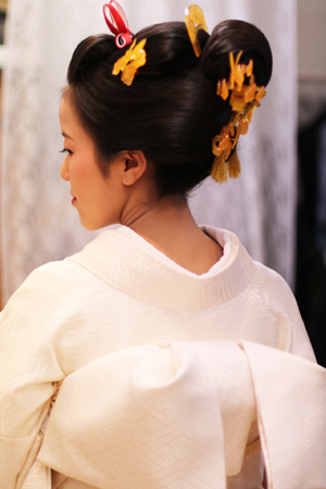 JUGEMテーマ:ブライダル アトリエパルファン 着物衣装 花嫁衣裳 白無垢掛下 新日本髪 鼈甲簪 白無垢 綿帽子 鼈甲簪 白無垢 洋髪 ヘアアクセサリー 生花 組みひも ビラ簪