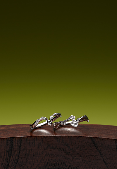 JUGEMテーマ:和の感性と京の情緒が灯る『萬時』の婚約指輪(エンゲージリング)・結婚指輪(マリッジリング)作品 【埼玉県ふじみ野市の彼女様の結婚指輪】 結婚指輪(マリッジリング):『鳳凰』 鳳凰は、平和だと訪れると謂われる伝説の火の鳥です おふたりが倖せだからこそ、薬指に在るのですね デザインをよく見て頂くと、男性用の凸凹の部分で 鳳凰の文字の風冠の形に見える様デザインを施してお ります 男性用のハンマー仕上げ部分は、鳳凰は桐の木にしか とまらないとされる為、桐の木を表現しております ...