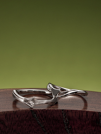 JUGEMテーマ:和の感性と京の情緒が灯る『萬時』の婚約指輪(エンゲージリング)・結婚指輪(マリッジリング)作品レイウエディング京都・滋賀版を見てご来店いただいたおふたりが一番気に入られた結婚指輪(マリッジリング)作品:『銀杏』銀杏の樹木は、オスの樹とメスの樹があり、オスの樹は葉の中央に凹が、メスの樹には凹がありませんオスとメスの対(つい)にて数億年前より存在したそうですおふたりに掛けてデザインした作品ですこのお話をするとお二人ともにすごく感動『すごいいいね』のお言葉も頂戴しました挙式はまだまだお...