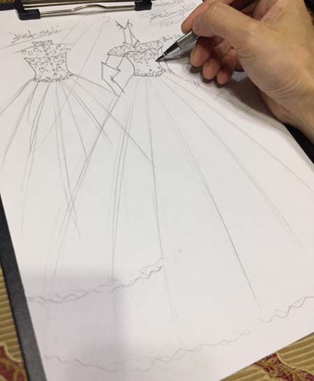 ご注文頂く花嫁様に描く”イメージデザイン”! お客様の思い描くウェディングドレスをデザインを立案。結婚式当日の”ウェディングドレス姿”を表現するイメージデザインです。 お客様との打合せを行い”花嫁様の理想のウェディングドレス姿”のご相談。 ご来店なされたお客様は、初めにどのようなウェディングドレスが似合うか?またどのようなデザインが好きか?イメージをお持ちのお客様とそうでないお客様がご来店なされます。イメージをお持ちの方は、画像やイメージを表現す...