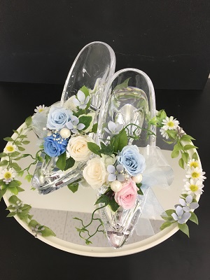 JUGEMテーマ:結婚 陽子さんの娘さんが披露宴で使う ガラスの靴を二足 これはリングピローになります。 そして 百合のブーケを手作りされました。 プリザーブドフラワーやアートのものは 下処理が大変です。 指先をうんと使うから肩凝りもするし でも、頑張ってみんな綺麗にワイヤリングして 仕上げもバッチリ 素敵に出来上がりました 披露宴の日が待ち遠しいですね。 本当におめでとうございます