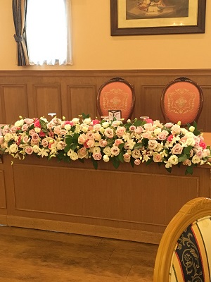 JUGEMテーマ:結婚 素敵な色で、素敵な会場を飾らせていただきました。 「温かなこんな色合いが今日の陽気にはピッタリですね」 と素敵な新郎さんに言っていただき ほっと胸をなでおろしました いつも喜んで頂けるかしらと結構 いや、かなり緊張ドキドキします こちらの席はご家族への披露パーティー。 こんな形もいいなぁと、思えます。 秋晴れの佳き日に ご披露の日を迎えられたみなさん どうぞお幸せに