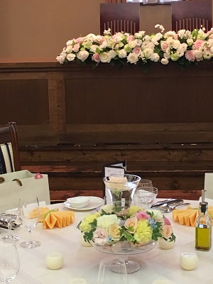 JUGEMテーマ:結婚 おはようございます(^。^) 日曜日の披露宴 雨かなぁと思っていたら 式が始まるころには青い空が見えてきて 嬉しかったなぁ 会場に花を運んでいたら ちょうど新婦さんがみえて、 ブーケを見てニコッと これまた嬉しかったなぁ ありがとうございます。