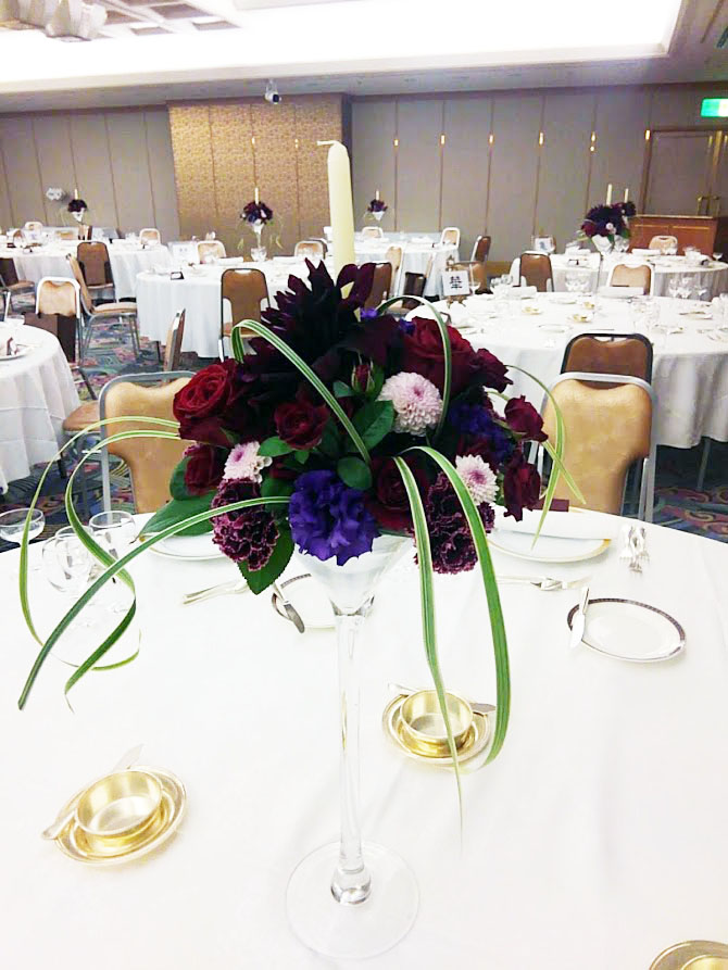 JUGEMテーマ:ブライダルプランナー テーマは、甘すぎず辛すぎず 「ん?」となりそうですが 意外に多く耳にするキーワードなのです そして、今回のお二人が選ばれた 甘すぎず辛すぎずが こちら 実は私も大好きな色バランス ボルドー系のダリアが和のテイストもだして とってもかわいい 通常、披露宴のお花って意外と残っているのですが… 今回は、全てゲストの...