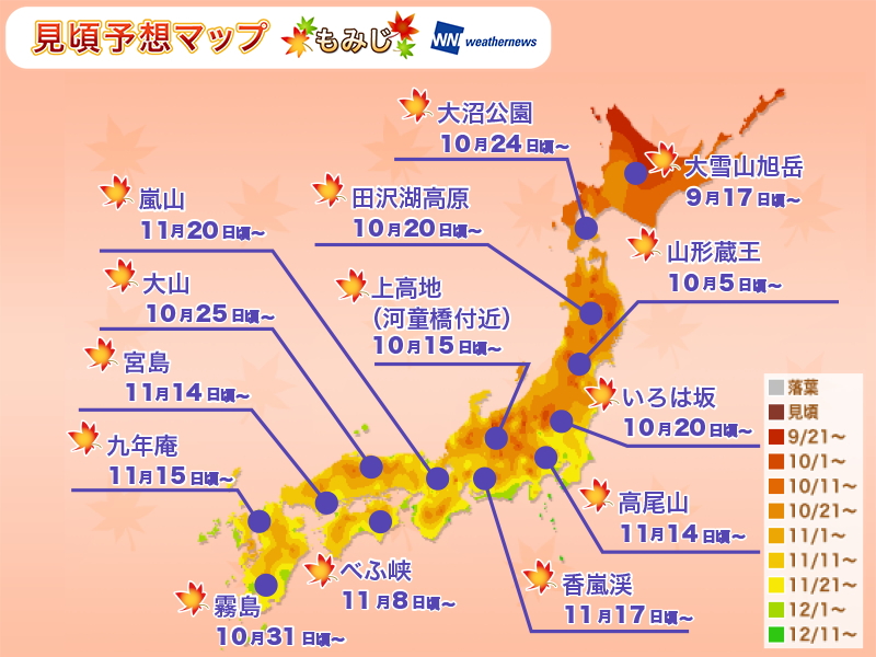 JUGEMテーマ:ブライダルプランナー 寒さが進むとともに紅葉の季節がやってきます 紅葉が色づく条件とは… 朝の最低気温が8℃を下回る日が続く 日が短くなる と言う事は勿論、寒さが早い 県北から始まり、例年では10月中旬ごろからです 全国的には、こんな感じです 広島市内では11月下旬ごろからが 見頃の予測 その年にもよりますが… 約1か月程度、...
