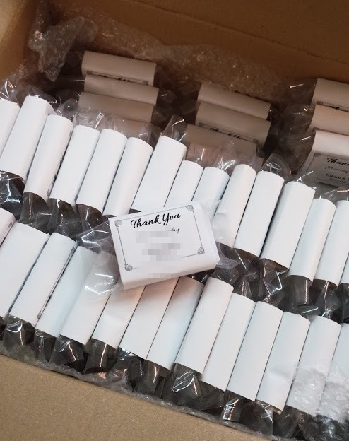 JUGEMテーマ:ブライダルプランナー 今日は素敵なものが届きました 披露宴のお見送りギフトとして 手作りをされたソープ とっても可愛くラッピングもされて 今回は、男性と女性でお見送りギフトを分けているのです お見送りギフトは 披露宴の引出物とは異なり 1名に1つ、今日は来てくれてありがとぉ と感謝の言葉を述べながら お渡しする大切なギフトになります ...