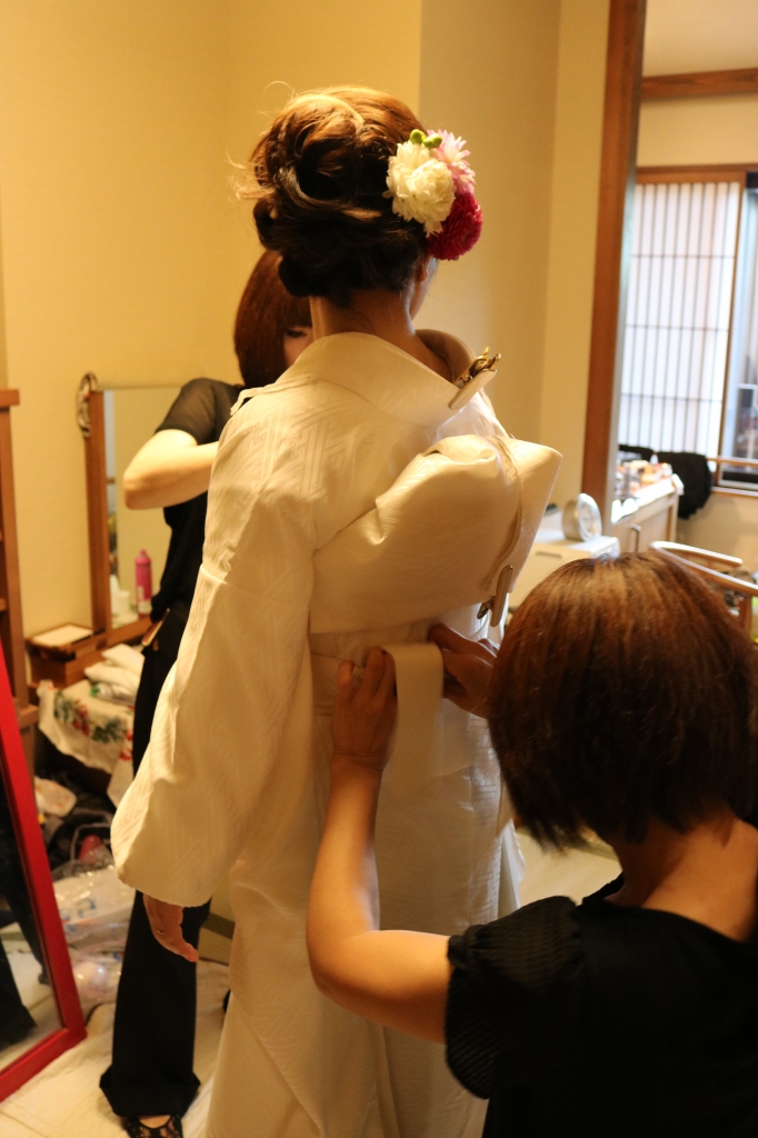 JUGEMテーマ:ブライダルプランナー なかなか一般では見ることがない 花嫁さんの着付風景 私は仕事柄、前撮りや本番で着付をしてる所を じっくりと食い入るように いつも見させて頂いてますが 妊婦さんの場合… 着物は締め付けるからしんどい だから着ない方が… と思われる方もいらっしゃるでしょうが ベテラン美容師なら大丈夫 お腹に負担がかからないように ...