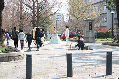 JUGEMテーマ:ブライダルプランナー 前撮りの撮影風景を隠し撮り 新郎新婦のお二人と 美容師カメラマンを先に下車してもらい… 私は駐車場に車を移動させる途中で 隠しとってみました 週末のロケ前撮りでは、やはり人が多い 恥ずかしがり屋の方には えっと思われるかも がしかし、意外と… 周りの人たちは、赤の他人なので 気にならないものなのです ...