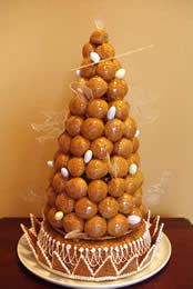 JUGEMテーマ:ブライダルプランナー ちょっぴ、みんなと違ったウエディングケーキで そんな方にはクロカンブッシュがお勧め クロカンブッシュとは、小さなシュークリームを 積み上げて作るフランス式のウエディングケーキです シューはキャベツを表しており 子孫繁栄の願いと豊かな収穫の願う物です 溶かした飴で積み重ねていくので ナイフでの入刀はできないので、二人で木槌で「コンコン」とたたきます &n...