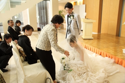 JUGEMテーマ:ブライダルプランナー 先日の結婚式でのエピソード 挙式の準備をしている中で 新婦さんのたってのご要望が 大好きなおばあちゃんに挙式で何かお手伝いをしてほしい とうことで 通用では、新婦のお母さまに 最後のお支度のお手伝いとして ヴェールダウンをお願いすることが多いのですが おばあちゃまに、最後のお支度のお手伝いをしていただくことに おばあちゃまの、...