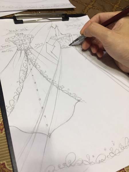 お客様に描く”オーダーメイドウェディングドレス”。 数パターンの構成から”最終決定のウェディングドレス”。 最近はデザイン画と製作、検品とドレスの納品発送ととても忙しくさせて頂いているメタモールフォーゼのアトリエ内。そして結婚式間近に控えるお客様との最終フィッティングや本仮縫い、小物のコーディネート。5月令和の結婚式はとても多かったです。また6月もジュンブライド言うこともあり弊社では、海外ウェディングで結婚式を挙げられるお客様が7割。3割は国内挙式のお客様です。関...