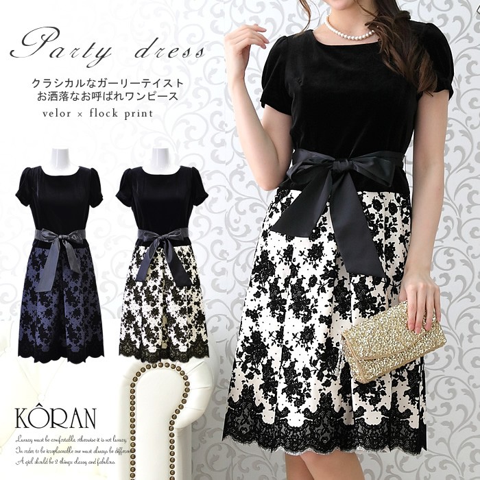 JUGEMテーマ:パーティ ベロアの美しい起毛感やフロッキーに贅沢感を味わう上品スタイル 大人ナチュラルな上品感を 結婚式などの華やぐお呼ばれの席を美しく飾る上品なフォーマルワンピース 滑らかな光沢を持ち綺麗な起毛が目を惹くベロア素材が贅沢な質感 パーティー生地の定番であるシャンタンの上には細かい花柄フロッキーを装飾したAラインスカート 異素材を絶妙なバランスで組み合わせが、いつまでも美しい女性らしさを引き立たせてくれます パーティドレス:20,900円 カラー:クリーム/ネイビ...