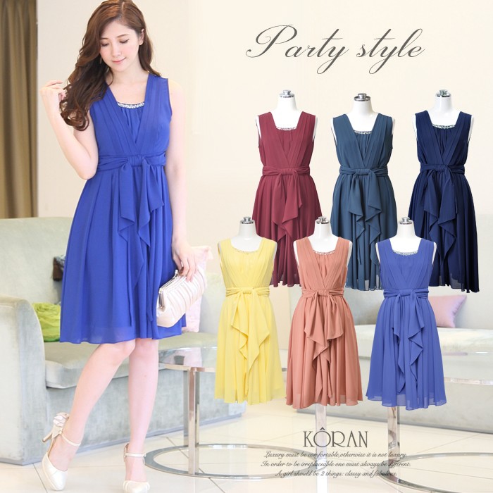 JUGEMテーマ:パーティ 自分サイズにウエスト調節ができるパーティードレス Xラインで着痩せ美人 グラマーさんや寸胴体型の方にオススメのフォーマルドレス Xラインでメリハリのある女らしさを演出し ウエストが太いとつい隠したくなりがちですが、あえて絞ってメリハリのあるシルエットに 少しボリュームのある裾広がりのスカートがポイント パーティドレス:7,000円(49%OFF) カラー:イエロー/コーラルピンク/ワイン/ブルーグリーン/ネイビー サイズ:9・11号