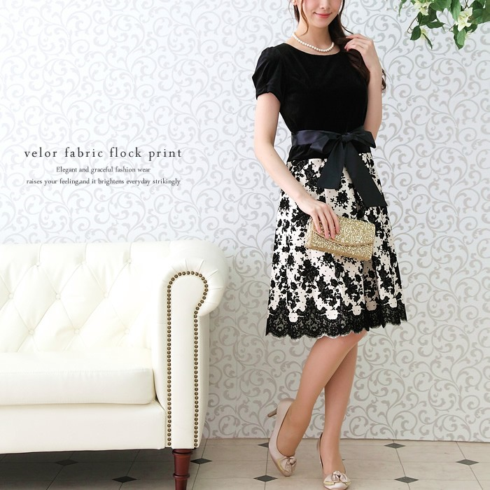 JUGEMテーマ:パーティ ベロアの美しい起毛感やフロッキーに贅沢感を味わう上品スタイル 大人ナチュラルな上品感を 結婚式などの華やぐお呼ばれの席を美しく飾る上品なフォーマルワンピース 滑らかな光沢を持ち綺麗な起毛が目を惹くベロア素材が贅沢な質感 パーティー生地の定番であるシャンタンの上には細かい花柄フロッキーを装飾したAラインスカート 異素材を絶妙なバランスで組み合わせが、いつまでも美しい女性らしさを引き立たせてくれます パーティ...
