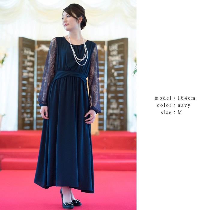 JUGEMテーマ:パーティ 歳を重ねる毎に気になる二の腕やウエスト… そんな悩みをカバーしてくれるフォーマルドレスを入荷しました 上品かつヘルシーに肌を美しく魅せる花柄レースの長袖に 柔らかなゴムで伸びる、苦しくないウエスト ウエストラインを美しく魅せる小ワザが効いています ロングドレスは安心感の時代へ 結婚式のゲストドレスから発表会の衣装にもオススメです パーティードレス:14,904円 カラー:/ネイビー/ブラック サイズ:M・L・LL・3L