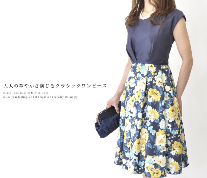 JUGEMテーマ:パーティ 甘さをひとさじ加えたデジタルプリントの花柄ワンピース 大胆な花柄スカートで大人ムード 結婚式やパーティーシーンを彩る大人のパーティー&フォーマルワンピース 微光沢感ある上身頃はタックを入れて、すっきりとウエストを見せ 後ろ姿も編み上げで締めてメリハリのある女らしいスタイルが完成 スカートは贅沢なボリューム感と、ほの甘な花柄がドラマチックに映る魅力的なデザイン 爽やかできれいなサックスブルーに落ち着いたネイビーの2カラーバリエーション &nb...