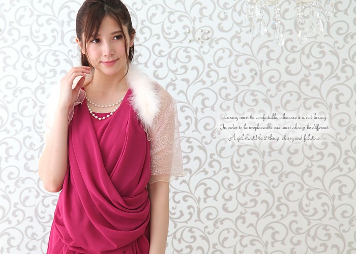 JUGEMテーマ:パーティ 鮮やかなドレープのパーティードレス 取り外し可能な2連のネックレスが胸元を華やかに彩り ウエスト部分のサイドボタンが違った印象をもたらします 2通りのスタイルが楽しめるオススメのパーティードレスです パーティードレス:14,800円 カラー:マゼンダ サイズ:M ドレスを華やかに飾るお洒落なショール 結婚式や披露宴などのお呼ばれにドレスを華やかなに飾るパーティーショール ふんわりとしたレー...