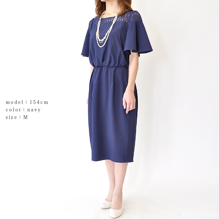 JUGEMテーマ:パーティ 大切な瞬間に着たい膝丈のワンピースドレス 気負わない女性らしさ 結婚式や披露宴など大切な瞬間に着たい膝丈のワンピースドレス 軽やかな印象になるレースの透け感と 大人可愛いフレアスリーブが二の腕や肩回りもさりげなくカバーします 幅広い年代にオススメです パーティードレス:15,984円 カラー:キャメル/ワインレッド/ターコイズ/ブルーグリーン/ネイビー サイズ:M L