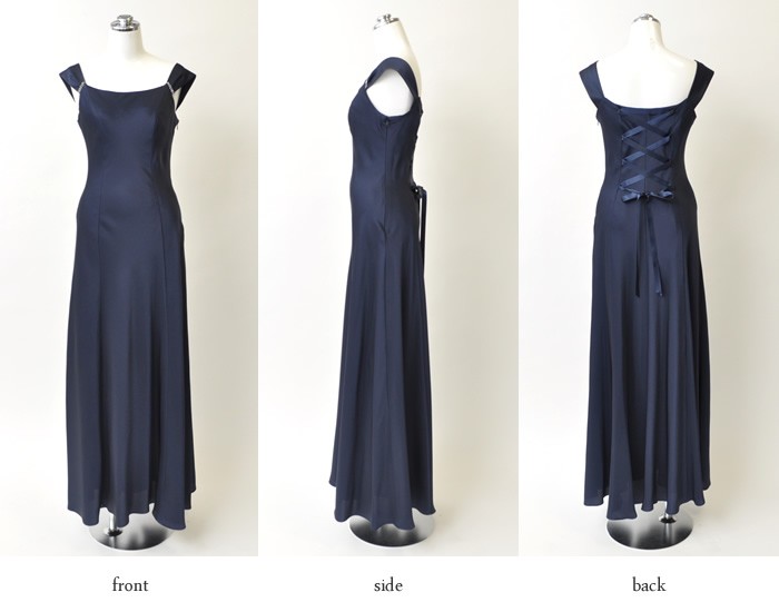 JUGEMテーマ:パーティ 大人のロングドレス 夜のパーティーシーンや二次会のドレスとしても華やかなロングドレス 体型をカバーしやすい生地のバイヤスや後ろスピンドルデザイン 肩にキラッと微かに魅せるビーズの光がシックな雰囲気に映えます フォーマルワンピース:39,960円 カラー:ネイビー/ブラック サイズ:9・11・13号
