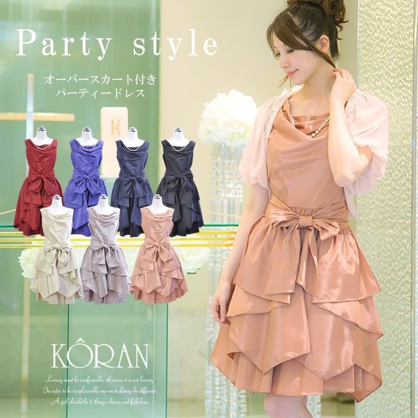 JUGEMテーマ:パーティ さりげない甘さ感じる上品スタイル 色:ピンク/ベージュ/モカピンク/レッド/バイオレット/ネイビー/ブラック サイズ:M・L パーティードレス:6,900円 結婚式のお呼ばれやパーティーなど、華やかなシーンを飾る女性の美しさを際立たせる上品ドレス 滑らかな光沢感を持った生地「T/Cブライト」は高級感を引き出し 胸元に添えたパールビジューが一層の華やかな印象 ふんわりとボリュームを出すオーバースカートは揺れ感が美しく、ちょぴり甘いデザインに きちん...