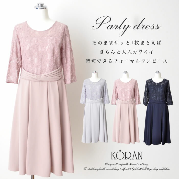 JUGEMテーマ:パーティ おめかししたい日に大活躍 https://store.shopping.yahoo.co.jp/koran/ko7-ce-a196.html 色:ピンク/グレー/ネイビー サイズ:M・L 価格:13,800円 結婚式・披露宴なパーティーシーンや発表会にオススメのワンピース ボレロがいらない五分袖に、脚をスラリと魅せてくれるウエストマーク コードレースに揺らめくとスカートで女子力もアップ キレイめカラーの淡いピンクとグレー、定番のネイビーをご用意しました