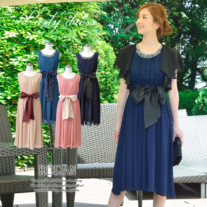 JUGEMテーマ:パーティ ☆リボンのアクセントで、脚長効果な着心地楽チンな大人ドレス。 http://item.rakuten.co.jp/koran/ko7-ce-a168/ 色:ベージュ/ピンク/ブルーグリーン/ネイビー サイズ:M・L 価格:13,800円 大人可愛い女性向けのお呼ばれワンピース シンプルな装いで縦ラインを意識したデザイン ウエストは総ゴムでちょっとしたお食事会にもオススメ リボンのアクセントで、脚長効果も作ってくれます